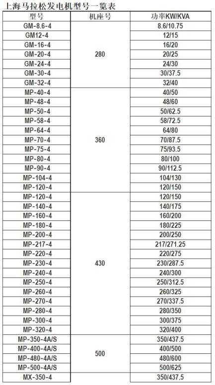 上海,馬拉松,75KW,發電機,價格,及,型號,一覽表,