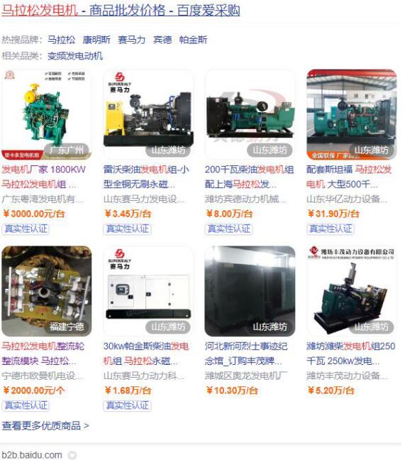 1、馬拉松發電機多少錢一個?可以根據馬拉松發電機價格圖顯示表明,馬拉松發電機價格低的是2000元-3000元一臺。其中3000元的馬拉松發電機產品顯示輸出功率1800KW、電壓