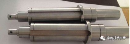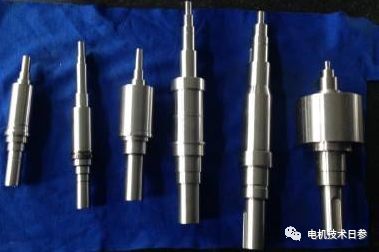 按照軸與鐵心結合方式。可分為中間滾花軸,熱應用軸和中間帶鍵槽的軸。滾花軸用于10 kW以下的小電機,可以省去加工鍵和鍵槽的工作。但軸壓入芯內時,很容易使軸變形。在電機運行期間,一些滾花轉子鐵芯軸向移動。這種軸變形是鐵芯與軸緊配合造成的,軸向位移是配合過盈量不足造成的。
