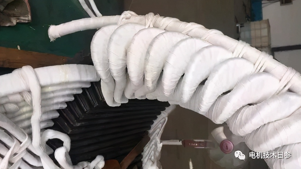 根據各生產加工單位的技術差異,云母材料的包裹一般采用手工、半手工、半機械和全自動的方法。相對來說,在手工纏繞的過程中,可以及時發現線圈或絕緣材料中可能存在的一些不當之處,但纏繞的緊密度和堆疊一致性不容易掌握,人為因素較多。使用半自動、全自動設備裝訂線圈時,裝訂效率高,裝訂帶堆疊一致性相對較好,因此自動裝訂設備不斷進入高壓電機制造企業。但是,無論是哪種纏繞方法,線圈的末端都只能用手纏繞。由于末端形狀的特殊性,很難包裹。但繞組端部是高壓電場極不均勻、易產生電暈的部位,是繞組生產加工的關鍵。