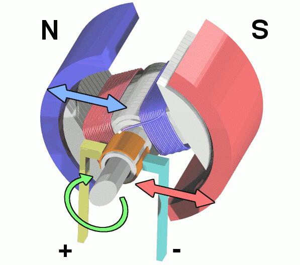 直流電動機的轉子上有一組永磁體或電極,當通電時,會產生磁場,與定子上的線圈相互作用,從而使電機轉動。但由于轉子的磁場方向是固定的,因此需要通過換向器來改變電流的方向,從而保證電機正常運轉。